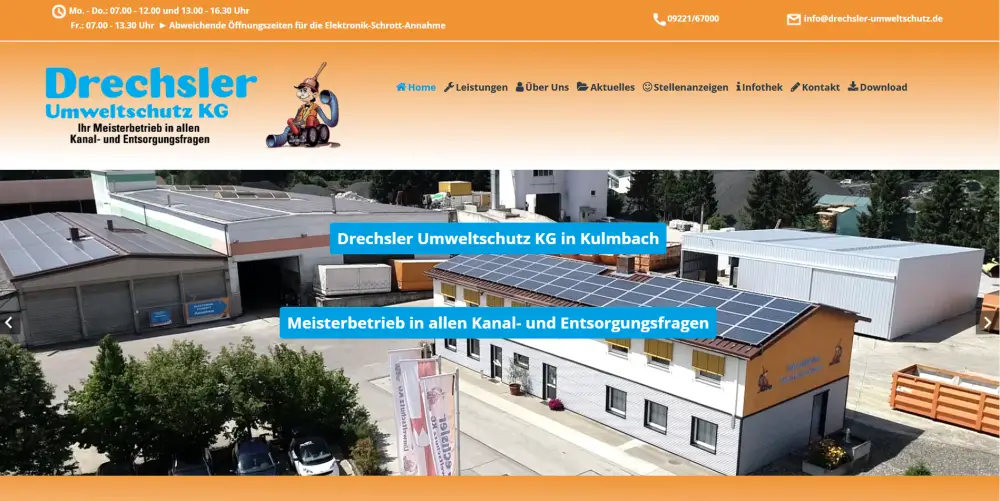 Drechsler Umweltschutz gilt in Oberfranken seit Jahren als zuverlässiger Meisterbetrieb in allen Kanal- u. Entsorgungsaufgaben, was durch die Zusammenarbeit mit Kommunen, Behörden, Industrie u. Privathaushalten immer wieder unter Beweis gestellt wird. Unser fachlich geschultes Personal ist immer auf den neuesten Stand der Technik.